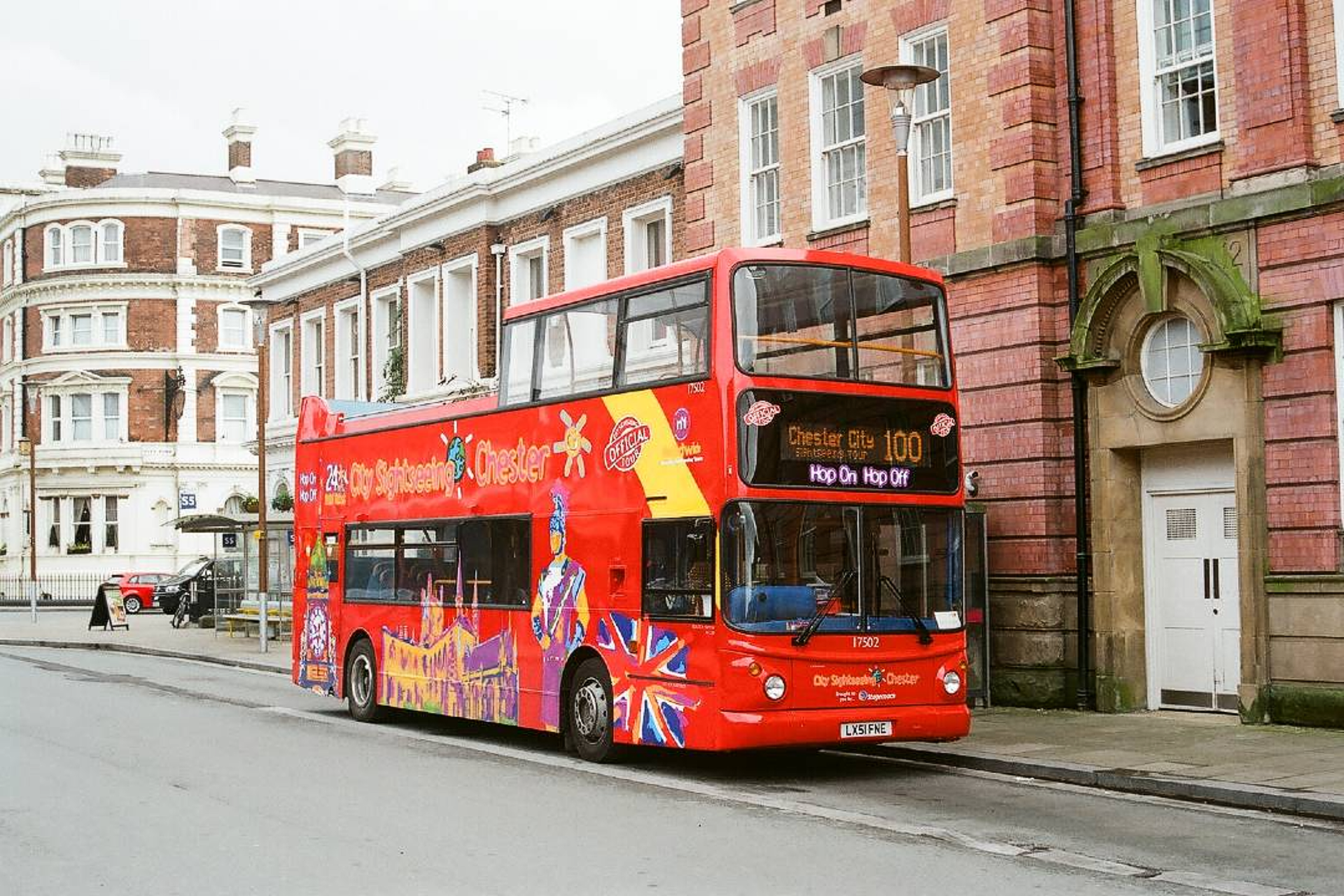 24 hour Hop-On Hop-Off Bus Tour with panoramic views of Chester.